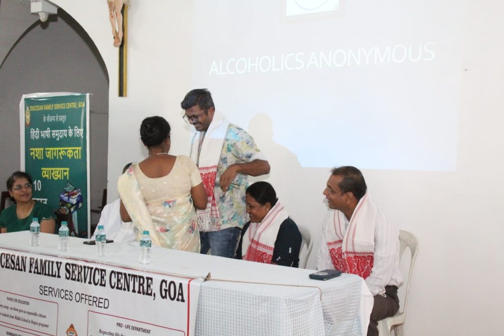 The Diocesan Family Centre, Goa organized an addiction awareness talk on August 10, 2025, in Old Goa at the St Catherine of Alexandria Parish Hall, the speakers, Mr. Shripad, Mr. George, and Ms. Renuka, along with the Parish Priest Fr. Rosario Oliveira and Ms. Hema Menezes, the coordinator from the Diocesan Family Centre, Goa were felicitated with shawls and flowers. A Total number of 175 members of the Hindi Speaking Community attended the awareness talk.